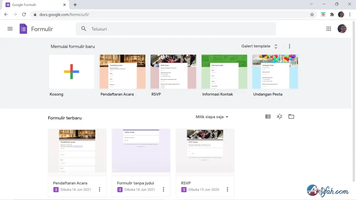 Setelah itu anda akan masuk ke halaman workspace google forms.
